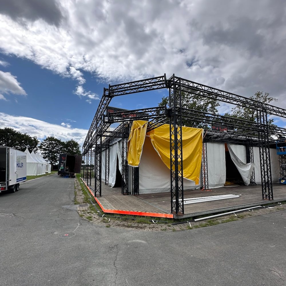 Der Zeltbau für den Stoppelmarkt ist in vollem Gange.